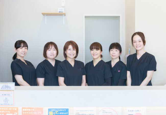 歯科医師、歯科衛生士、歯科助手、トリートメントコーディネーター、受付、それぞれのスタッフが役割を果たし、チームとして協力しながら診療を実施。患者さんのために真摯に治療に取り組んでいます。