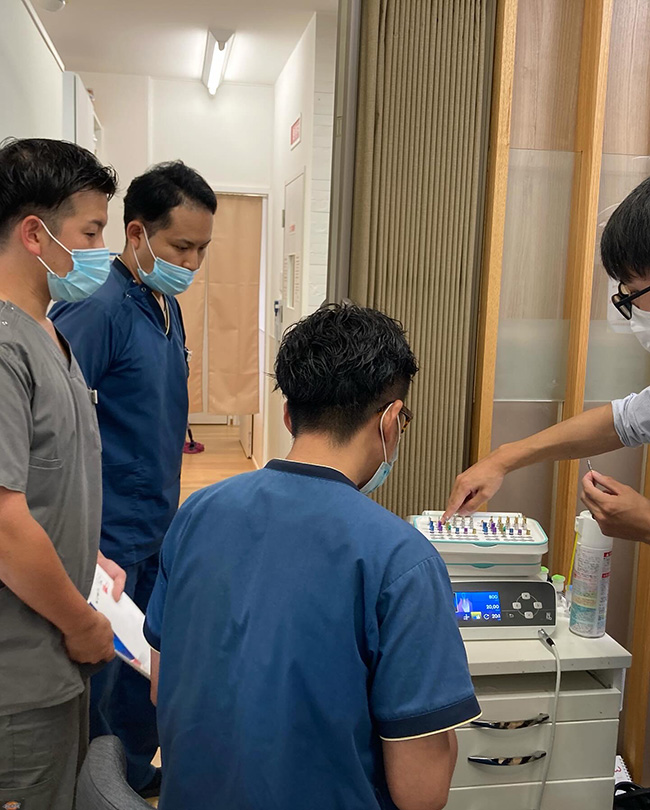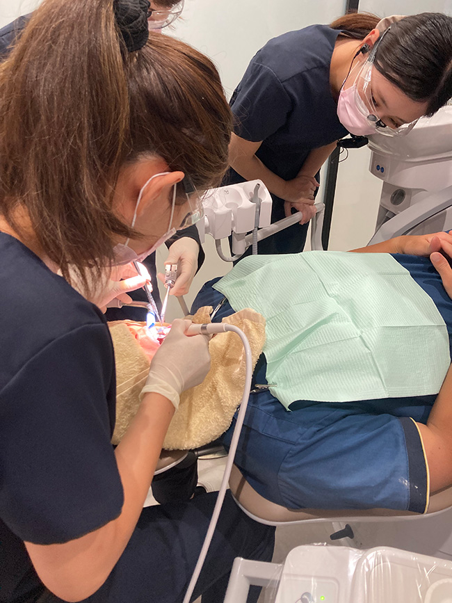 小児歯科から義歯治療まで、幅広い分野での経験を積めます。専門知識を必要とする高度な治療も学べます。